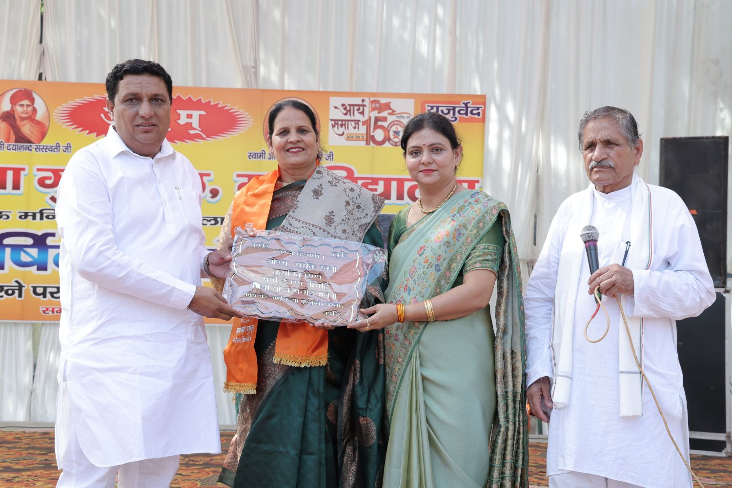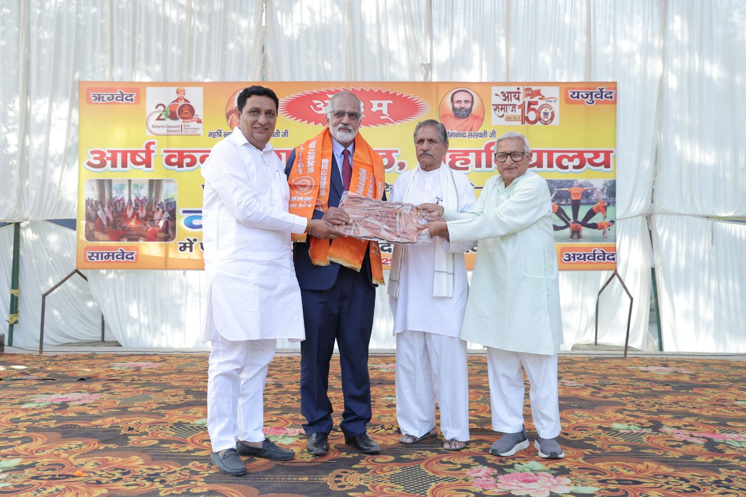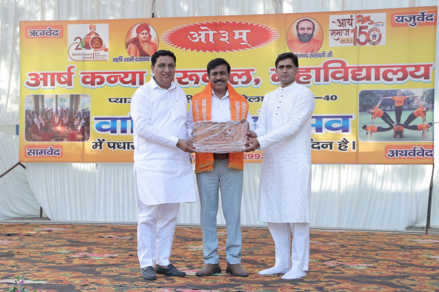 आर्ष कन्या गुरुकुल के वार्षिक उत्सव के पावन अवसर पर विशिष्ट अतिथियों का भव्य स्वागत एवं स्मृति चिह्न भेंट कर सम्मान समारोह। इस उत्सव में समाज के प्रतिष्ठित धार्मिक एवं सामाजिक नेताओं की गरिमामयी उपस्थिति रही।