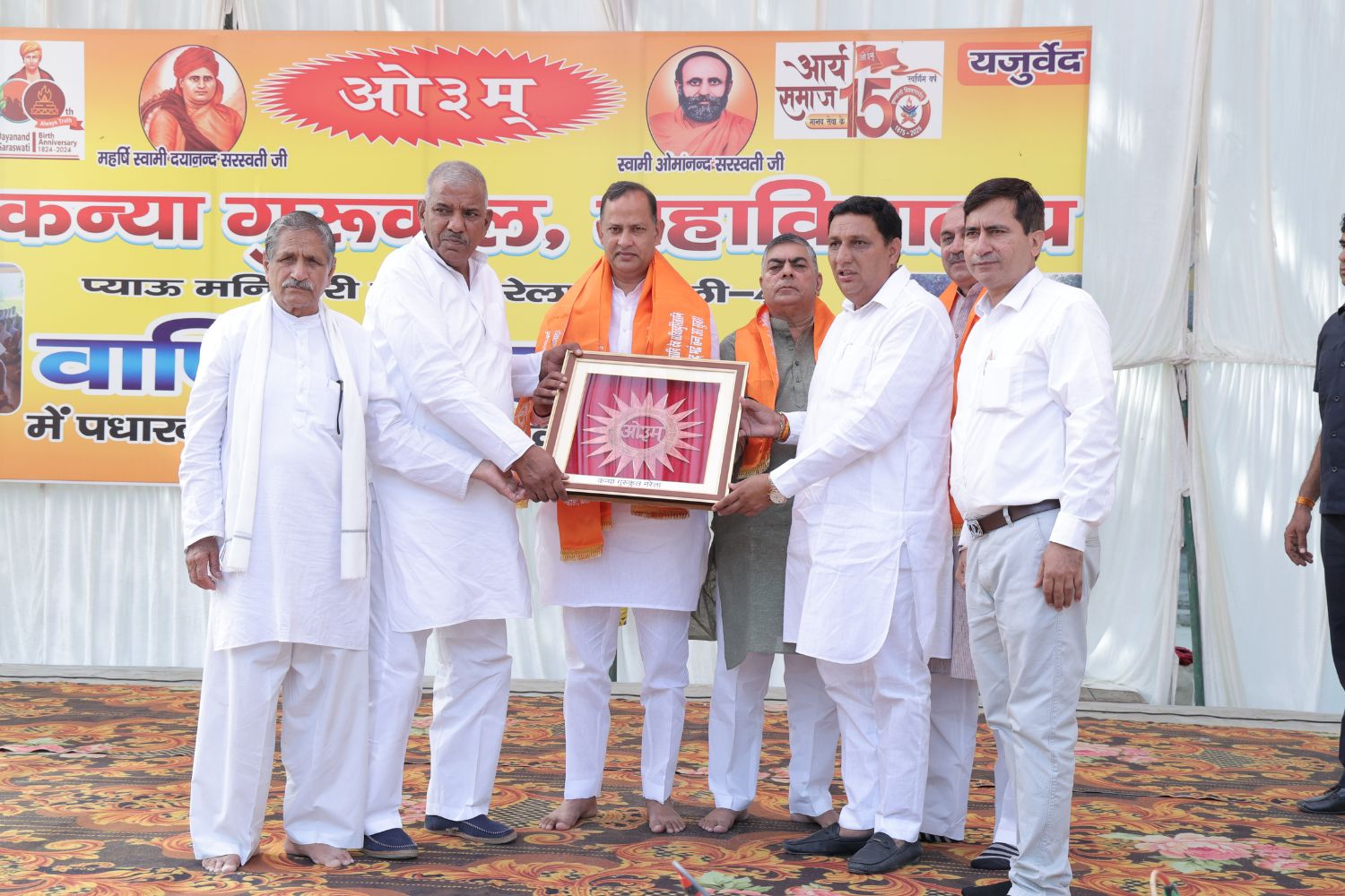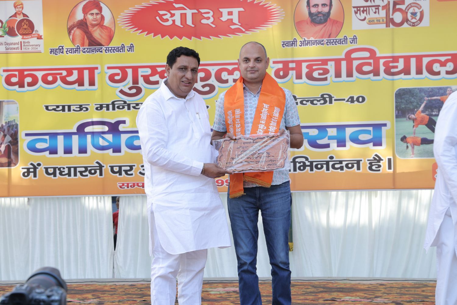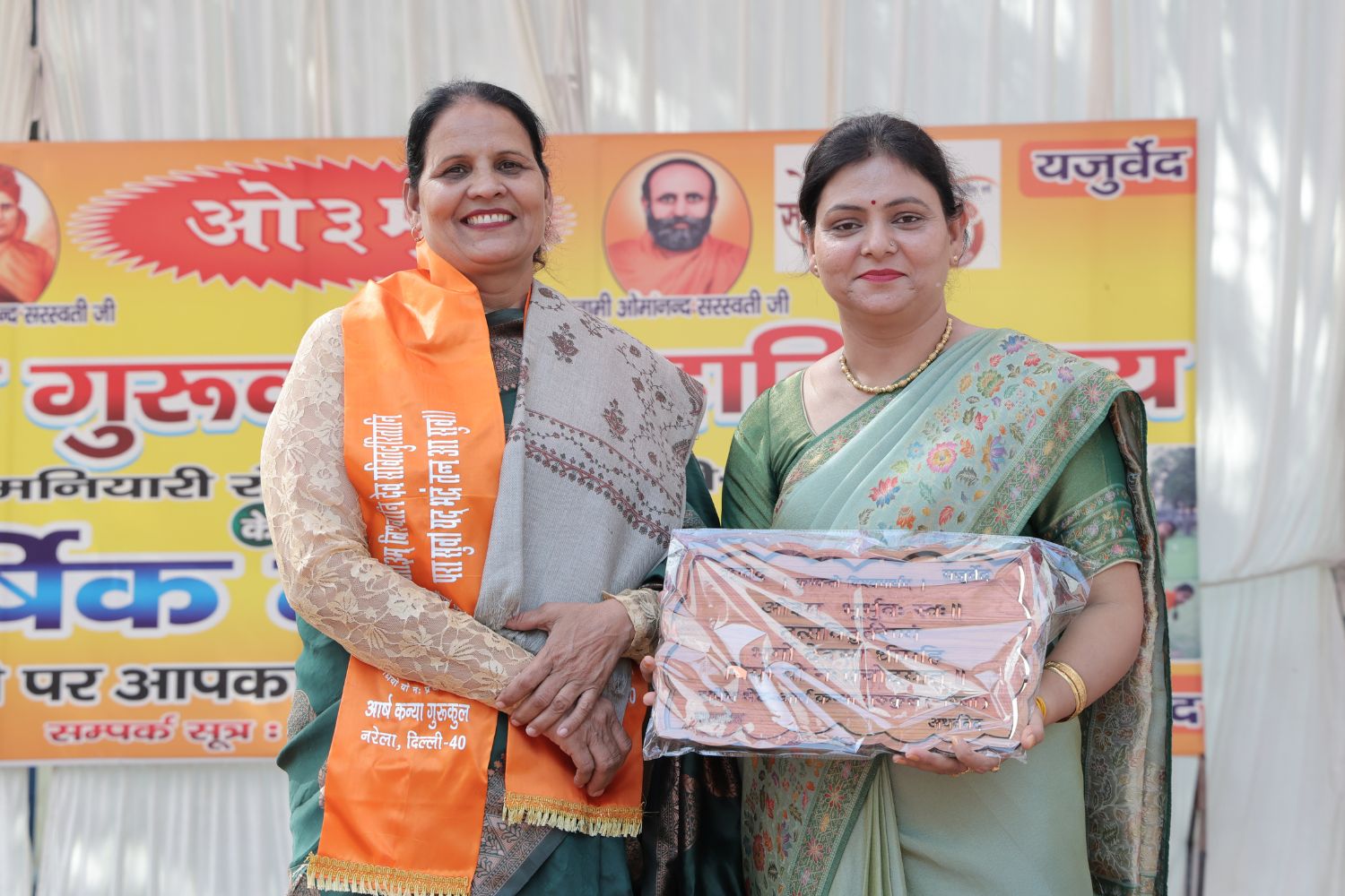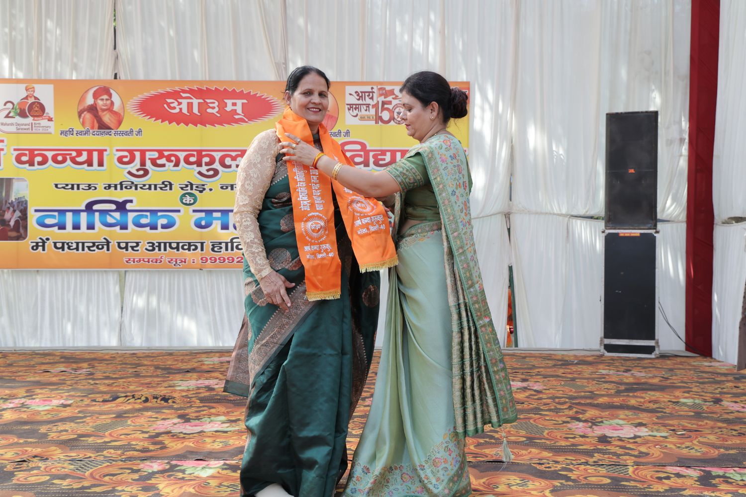 आर्ष कन्या गुरुकुल के वार्षिक उत्सव के पावन अवसर पर विशिष्ट अतिथियों का भव्य स्वागत एवं स्मृति चिह्न भेंट कर सम्मान समारोह। इस उत्सव में समाज के प्रतिष्ठित धार्मिक एवं सामाजिक नेताओं की गरिमामयी उपस्थिति रही।